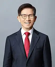 Kim Moon-soo (Hangul: 김문수; born August 27, 1951) is 13th Chairperson of the Economic, Social and Labor Council (ESLC) of the Republic of Korea effective from September 30, 2022. He was Korean conservative politician and the 32nd Governor of Gyeonggi Province in South Korea. A former labor activist, he began his career in politics when he participated in the foundation of the People's Party in 1990. He was elected to the 15th National Assembly at Sosa-gu, Bucheon, as a candidate for the New Korea Party. After continuing to serve as a member of the assembly in the 16th and the 17th National Assemblies, he became the 4th Governor of Gyeonggi Province to be elected by popular vote in 2006.