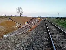 A 5-road secure yard has been created to the north of the station as part of a £3.25M agreement to provide siding capacity for approximately thirty Class 755 multiple units for Greater Anglia.[8] A modification to the plan for the creation of this yard involved the removal of a section of the up formation of the line to slightly extend the storage capacity of one siding, replacing the original plan to relay the second line from Hardingham to Kimberley.