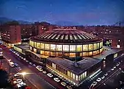 Due to the increasing fame of Virtus, the Sala Borsa was no longer suitable for hosting games; so in 1956, the long-time Mayor of Bologna, Giuseppe Dozza, inaugurated a new arena, which was simply known as "Sports Hall" and had a seating capacity of more than 7,000 people.[15] The arena was later nicknamed Il Madison, after New York's Madison Square Garden and, in 1966, after Dozza's retirement from politics, it was renamed "PalaDozza". From 1956 to 1960, Virtus placed second, always behind its arch-rival Olimpia Milan. At the end of the 1959–60 season, Tracuzzi left Virtus after having won two championships in five seasons, with a winning record of 108–22, being widely considered one of Black V's greatest coaches of all time.[16]