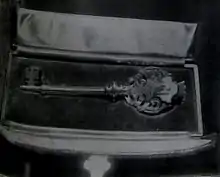 The Princess unveiled the medallion plaque of Edward VII in the vestibule. Carved by Emil Fuchs, it was described as a "most lifelike portrait of the late king." The medallion itself was carved from Carrara marble and fixed to a framed panel of reddish-brown and white-veined rosso antico marble.[2][39] The frame was described as being "of a fine white free stone of a classical design." The inscription on the panel said: "This medallion was unveiled, and this building formally opened, by Her Royal Highness Princess Henry of Battenburg on behalf of Her Most Gracious Majesty Queen Alexandra by whose gracious permission it was named The King Edward VII Memorial Hall, July 10th 1913." F.W.J. Palmer presented her with a gold key; she opened a door to the Hall and declared it open.[2] After the ceremony the schoolchildren were marched back to their schools where they enjoyed a free tea and a sports day.[2]