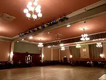 Amateur dramatics groups such as Herne Bay Operatic Society (started 1951) and Theatrecraft (started 1948) have always used the Hall and as of 2013 continued to do so.[36][53][54] Professional wrestling took place here in the 1970s. In 1978, Opera For All presented a small-scale, costumed performance of La Traviata by young, professional singers accompanied by a single piano.[55] In 1987 the Sittingbourne DJ Steve Barker organised several under-18 celebrity discos, featuring Bradley Sheppard and Lee MacDonald.[56] In 1988 Jupiter Brass gave a concert at Herne Bay Music Club's 10th birthday.[57] In April 1989 The Soviet National Folk Dance Ensemble of twenty dancers and nine musicians, on their first visit outside Soviet Russia, stayed with families locally and performed at the Hall.[58] The Hall hosted a keyboard and organ festival in aid of charity in 1989.[59] In April, May and June 1999, 691 Promotions operated monthly raves with police approval from 11.45pm until 7.45am. At a previous rave held at the Hall in March 1999, there were three arrests.[60]