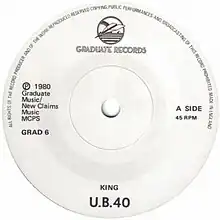 "King" is a song by British reggae band UB40, released as their debut single in February 1980 from their album Signing Off. It peaked at number 4 on the UK Singles Chart as a double A-side single with "Food for Thought".[3]
