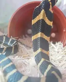 In northern India, it has been recorded in Garhwal and Kumaon, and in the Shivalik and terai regions of Uttarakhand and Uttar Pradesh.[22][23][24] In northeast India, the king cobra has been recorded in northern West Bengal, Sikkim, Assam, Meghalaya, Arunachal Pradesh, Nagaland, Manipur and Mizoram.[25][26] In the Eastern Ghats, it occurs from Tamil Nadu and Andhra Pradesh to coastal Odisha, and also in Bihar and southern West Bengal, especially the Sundarbans.[4][25][27] In the Western Ghats, it was recorded in Kerala, Karnataka and Maharashtra, and also in Gujarat.[25][28][19][29] It also occurs on Baratang Island in the Great Andaman chain.[30]