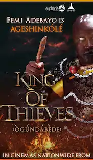 "King of Thieves" (Ògúndábède) tells the tale of the renowned town and prosperous kingdom of Ajeromi. Life in Ajeromi was thriving, with peace and prosperity reigning supreme. However, the tranquility of the kingdom was disrupted when Agesinkole, a formidable bandit and terrorist, arrived to unleash terror upon its people.