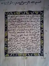 Laurent-Charles Feraud indicates in the "Histoire Des Villes de la Province de Constantine" that during the period of the Bey and the first years of French colonization, the Mokrani had as their distinctive insignia, a silk standard, in the middle of which were written in gold letters "Help comes from God, and victory is near".[97]