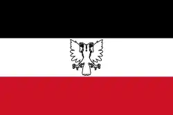 The kingdom's original flag was made up of three horizontal bars of black, white and red, in style of that of German Empire. At the center of the white bar it had a white, Albanian-style double-headed eagle.