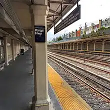 The Kings Highway station is a local station on the BMT Sea Beach Line of the New York City Subway, located at the intersection of Kings Highway and West Seventh Street in Gravesend, Brooklyn. It is served by the N train at all times. During rush hours, several W and northbound Q trains also serve the station.[lower-alpha 1]