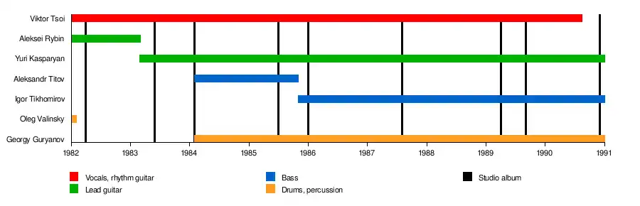 • Viktor Tsoi (Виктор Цой) – lead vocals, rhythm guitar, acoustic guitar (1981–1990; died 1990)
