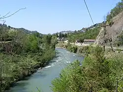 The Kintrishi rises in the Meskheti Range near Mount Khino, at an elevation of 2,599 metres (8,527 ft) above sea level. It flows through the municipality Kobuleti. It flows initially in a westerly direction through the mountains. North of the river is the Kintrishi National Park, south of the Mtirala National Park. The Kintrishi passes the village of Chino and takes on the left tributary of Cherkena. The river then turns north and cuts through a mountain range. Later it turns west again. In the coastal plain it still takes on the Kinkischa on the left side and finally reached on the southern outskirts of Kobuleti by a spit almost completely separated from the Black Sea estuary, in which also flows from the southeast inflowing Dechwa. The Kintrishi has a length of 45 km (28 mi). It drains an area of 291 km2 (112 sq mi). [1] Settlements in order from the source: