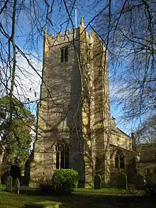 The parish church in the village is dedicated to St Michael. It was built in the 13th century with subsequent restorations and contains banners and armour of the Wandesford family who still own the Hall. It is a Grade I listed Building.[8][15]