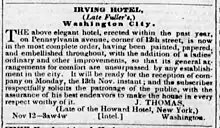 - 1 2 3 4 5 6 "Local Intelligencer: Hotel". Evening Star. April 21, 1854. p. 3. Retrieved 2023-06-30 – via Newspapers.com.