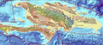 - 1 2 3 Bowin, Carl (1975). Nairn, Alan; Stehli, Francis (eds.). The Geology of Hispaniola, in The Ocean Basins and Margins. New York: Springer Science+Business Media, LLC. p. 503. ISBN 9781468485370.