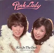 "Kiss in the Dark" (キッス・イン・ザ・ダーク, Kissu in za Dāku) is the 14th single released in Japan, and the first single released in the United States, by Japanese duo Pink Lady. The song was recorded for their debut American album Pink Lady. The duo debuted the song in May 1979 on a Leif Garrett TV special. The song's peak position in Japan on the Oricon chart was 19, and on the American Billboard charts was 37.[1] This was the first release of the duo to fail to make the top 10 in Japan. In addition to the all-English version of the song which was a hit in the U.S., Pink Lady recorded a bilingual version for the album We Are Sexy, with the chorus in English and the verses in Japanese. The B-side of the single is a cover of The Left Banke's "Walk Away Renée".[2]