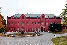 The settlement was named Klášterec (diminutive from klášter, meaning "little monastery") after the branch of the monastery founded here by monks from Postoloprty.[2] Since 1921, the town has been named Klášterec nad Ohří to distinguish from other places with the same name.[3]
