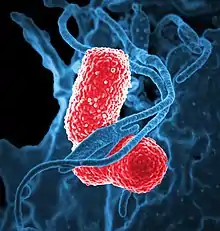 - ↑ Li B, Zhao Y, Liu C, Chen Z, Zhou D (2014). "Molecular pathogenesis of Klebsiella pneumoniae". Future Microbiology. 9 (9): 1071–1081. doi:10.2217/fmb.14.48. PMID 25340836.