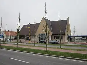 Knokke railway station (Dutch: Station Knokke, French: Gare de Knokke), officially Knokke, is a railway station serving Knokke-Heist and Knokke, in West Flanders, Belgium. The station was built in 1920. It is run by the National Railway Company of Belgium (NMBS/SNCB) as a terminal station located on the railway line 51B from Brugge and has services to Brussels-South and beyond to Tongeren. The Kusttram terminus is located outside the station with trams to Oostende and beyond.[1]