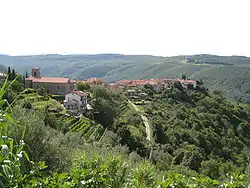 Koštabona stands on a hill above the Dragonja River. Archaeological evidence shows that the site was inhabited in prehistoric times.[5]
