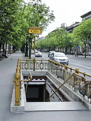 The station was opened on 2 May 1896 as part of the inaugural section of the Budapest Metro, between Vörösmarty tér and Széchenyi fürdő.[1] This section, known as the Millennium Underground Railway, was the first metro system in continental Europe. In 2002, it was included into the World Heritage Site "Budapest, including the Banks of the Danube, the Buda Castle Quarter and Andrássy Avenue".[2]
