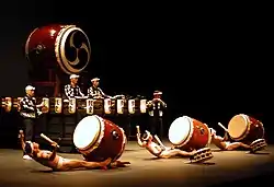 Kodō (鼓童) is a professional taiko drumming troupe. Based on Sado Island, Japan, they have had a role in popularizing taiko drumming, both in Japan and abroad.[1] They regularly tour Japan, Europe, and the United States. In Japanese the word "Kodō" conveys two meanings: "heartbeat" the primal source of all rhythm and, read in a different way, the word can mean "children of the drum".