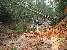 The road was operative till 1990 but was ignored by both the Tamil Nadu Forest Department and the Kerala Highways Department in a dispute over its inter-state ownership.[13] The old road is now in disrepair and overgrown with vegetation in some places. It is used as a logging trail and as a walking trail by local villagers and trekkers. Encounters with wild animals including bison, elephants, Leeches and leopards sometimes occur on the trail.[14][15]