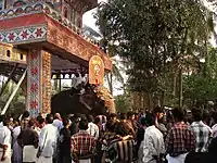 The festival consists of a Chenda melam, Thayambaka and Panchvadyam, and the bringing of a pair of decorated artificial bullocks called kaala, before being concluded with a vedikkettu (fireworks event).
