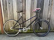 The Porteur/Randonneur (abbreviated P/R) model was introduced in 2006. Based on classic French bicycle geometry, it was designed to support configuration as a load-carrying (porteur) or long-distance (randonneur) bicycle. The P/R is notable because it was designed around the 650b wheel size and is available with a choice of three different forks with differing degrees of trail, allowing the rider to choose which steering characteristics best suit their intended usage of the bicycle. The low-trail fork of the Porteur allowed for the use of a large front rack set high without negative effects on handling.[3] The P/R framesets were powdercoated custard-yellow and shipped with matching steel fenders.