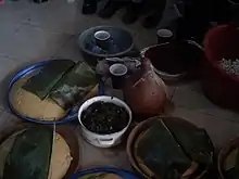 Although there has been a large amount of social change within the Kom culture, oral tradition within the community is still very significant and contributes to the annual festival that is hosted by the Fon. Food that is traditionally served at these events can be found all over the Kom community. This includes Abain and Bas, which is corn-fufu and vegetables, and khati-khati to help the Abain and Bas enter the stomach quickly.[1]