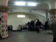 Komsomolskaya (Russian: Комсомо́льская) is a Moscow Metro station in the Krasnoselsky District, Central Administrative Okrug, Moscow. It is on the Sokolnicheskaya line, between Krasnye Vorota and Krasnoselskaya stations. It is located under Komsomolskaya Square, between the Leningradsky, Yaroslavsky, and Kazansky railway terminals. The station was named for the workers of the Komsomol youth league who helped to construct the first Metro line. It has a transfer at its namesake on the Koltsevaya line.