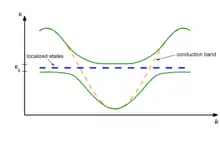 Dispersion relation of conduction band and localized states.