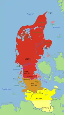![]() Map of Jutland with the Kongeå on the western coast. | |