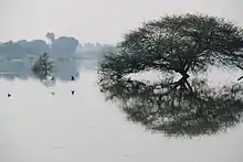 Some of the birds which can be seen here are painted stork, Oriental ibis, common sandpiper, Indian spot-billed duck, common coot, rosy starling, little cormorant, cattle egret, intermediate egret, little egret, southern coucal, rose-ringed parakeet, white-breasted kingfisher, pied kingfisher, darter, little grebe, spotted owlet, Indian roller, ashy prinia, common hoopoe, common moorhen, common myna, pied wagtail, grey wagtail, pied bushchat, Asian green bee-eater, black-winged kite, Asian koel, pond heron, black drongo, pied cuckoo, blue-faced malkoha, Indian robin, purple sunbird, purple-rumped sunbird, white-headed babbler, common flameback, open-bill stork, greater egret, grey heron, Eurasian collared dove, glossy ibis, rock pigeon, white-breasted waterhen, Indian paradise flycatcher, paddy-field pipit, Indian silverbill, northern shoveller.
