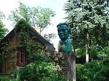Bust of the poet in front of the museum in the forester's lodge Pranie.