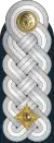 The rank insignia consisted of shoulder strap and sleeve stripes. Shoulder straps had to be worn on uniform jackets and consisted of twisted silver-braids with one gold pip (star) on padding in navy blue weapon color.