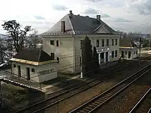 Kraków Mydlniki is a railway station in the Bronowice district of Kraków, Poland, located in the neighbourhood of Mydlniki, northwest of the city centre. The station, with its historic building, lies within the Tenczynek Landscape Park (Tenczyński Park Krajobrazowy) protected area with numerous summer visitors, because the Park is also the location of a medieval Tenczyn Castle built as a seat of the powerful Tęczyński family.[1] It fell into ruin during the Deluge in mid-17th century, after being pillaged and burned by Swedish-Brandenburgian forces looking for the Polish Crown Jewels and the rumored treasures of the Tęczyński family.[2] Within the Landscape Park are five nature reserves.