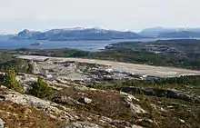 Kristiansund Airport (Norwegian: Kristiansund lufthavn; IATA: KSU[3], ICAO: ENKB) is an international airport serving Kristiansund, Norway. It is situated at Kvernberget on the island of Nordlandet and is the sole scheduled airport serving Nordmøre. The airport features a 2,390-meter (7,840 ft) runway aligned 07/25. In addition to scheduled services operated by Scandinavian Airlines and Widerøe, it serves offshore helicopter traffic to the Norwegian Sea operated by CHC Helikopter Service. Kvernberget handled 314,084 passengers in 2018.