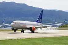 The busiest route is provided by Scandinavian Airlines, which operates four daily round trips to Oslo using Boeing 737 aircraft. Flights along the West Coast to Bergen, Florø, Molde, Stavanger and Trondheim are provided by Widerøe using Bombardier Dash 8 aircraft.[11] CHC Helikopter Service operates out of Kristiansund Airport to nine offshore oil platforms in the Norwegian Sea.[23] There are also some seasonal charter services.[11] Operation of the airport ran at a deficit of NOK 23 million in 2012.[24] In 2018, Kvernberget airport served 314,084 passengers and had 10,441 aircraft movements.[2]