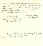 There is a debate about Misirkov's ethnicity in North Macedonia issued by Dr. Rastislav Terzioski, who brought to light memos from Russian archives which clearly stated his pro-Bulgarian positions.[63] The publication of his 1913 diary, which revealed his pro-Bulgarian views, sparked a major controversy in Skopje.[39] The Social Democratic Union of Macedonia even called for the dismissal of Zoran Todorovski, who was then director of the State Archives of Macedonia. Regarding Misirkov's signature as a "Macedonian Bulgarian", the Macedonian historians and linguists argue that it means a Macedonian person with a Bulgarian citizenship.[64] On the other hand, according to Vlado Popovski, Misirkov's usage of the term "Macedonian Bulgarian" was only a tactic as a consequence of the Balkan wars and the Bucharest Agreement.[65] In 1914 and many times after that, he repeated his views about the Macedonian national existence.[66]