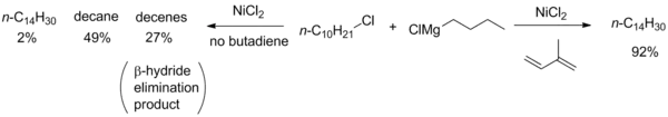 - ↑ Terao, Jun; Watanabe, Hideyuki; Ikumi, Aki; Kuniyasu, Hitoshi; Kambe, Nobuaki (1 April 2002). "Nickel-Catalyzed Cross-Coupling Reaction of Grignard Reagents with Alkyl Halides and Tosylates: Remarkable Effect of 1,3-Butadienes". Journal of the American Chemical Society. 124 (16): 4222–4223. doi:10.1021/ja025828v. PMID 11960446.