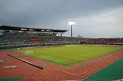 Kumagaya Athletics Stadium (熊谷スポーツ文化公園陸上競技場) is a multi-use stadium in Kumagaya, Saitama, Japan. The stadium is part of a larger sports complex which includes a smaller athletics stadium, a rugby stadium and a large arena. The complex is located in the Kumagaya Park.
