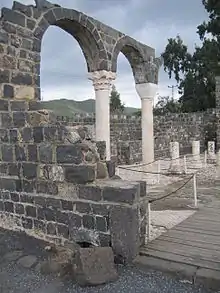 Kursi (Byzantine Greek Κυρσοί) is an archaeological site in the Golan Heights containing the ruins of a Byzantine monastery and identified by tradition as the site of Jesus' "Miracle of the Swine". Part of the archaeological site is now an Israeli national park. Kursi takes its name from the Talmudic site.[1] A marble slab with Aramaic text discovered in December 2015 seems to indicate that the settlement had, as of ca. 500 CE, a Jewish or Judeo-Christian population.