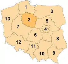 In European elections, Kuyavian-Pomeranian (Polish: kujawsko-pomorskiego) is a constituency of the European Parliament. It consists of the Kuyavian-Pomeranian Voivodeship.