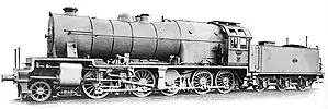 An initial design for a four-cylinder 2-10-0 was produced. An outline drawing, dated 18 June 1914, is shown in (Marshall (3) 1972).[10][11] The calculated tractive effort of 53,328 lbf (237,000 N)[12] would be exceptional for this time; the contemporary Class 31 0-8-0 was only 34,055 lbf (151,000 N) in comparison.