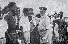 Order was restored with the use of African police officers in the employ of the colonial government and with armored cars under the direction of General Émile Janssens.[12][13] Colonial authorities arrested as many as 300 Congolese, including Kasa-Vubu, who would later become the newly independent Congo's first president, Simon Mzeza[14] and ABAKO vice-president Daniel Kanza and charged them with inciting the riot.[12]