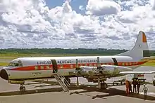 The CV-240s were replaced by three Lockheed L-188C Electra turboprops, which were acquired from Eastern Air Lines in 1969, and were operated for over 20 years.[2] On February 26, 1969, the airline entered into regular operation, with three weekly frequencies for Sao Paulo. Once a week, the flight continued to Rio de Janeiro, before returning to Asunción. In 1970, service started to Santa Cruz de la Sierra, Resistencia and Salta with a Douglas C-47 transferred from the Military Air Transport of the FAP. In 1972, La Paz, Bolivia was added to LAP's network. In 1973 a route to Lima was inaugurated and in 1978 to Santiago.