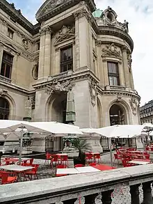 L'Opéra Restaurant is a restaurant in Paris, France. Built into the Palais Garnier opera house's east facade, the restaurant is at the intersection of Gluck and Halévy streets, at the Place Jacques Rouché, in the 9th arrondissement. The restaurant premiered in 2011, 136 years after the Opera itself was opened.[1]