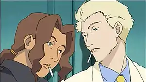 - ↑ Director: Itsuro Kawasaki (February 19, 2003). "Ivory". L/R: Licensed by Royalty. Episode 7. Fuji Television.