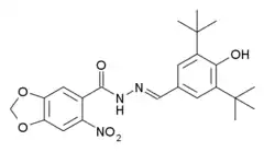 - ↑ Duarte CD, Tributino JL, Lacerda DI, Martins MV, Alexandre-Moreira MS, Dutra F, et al. (March 2007). "Synthesis, pharmacological evaluation and electrochemical studies of novel 6-nitro-3,4-methylenedioxyphenyl-N-acylhydrazone derivatives: Discovery of LASSBio-881, a new ligand of cannabinoid receptors". Bioorganic & Medicinal Chemistry. 15 (6): 2421–33. doi:10.1016/j.bmc.2007.01.013. PMID 17275312.