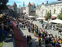 Annual Pride parades had been organised in Tallinn since 2004. In an incident in 2007, some of the parade's participants were verbally and physically attacked by anti-gay protesters.[86] After the 2007 violent anti-gay attacks, no Tallinn Pride parade took place until 2017. Some 1,800 people attended the event in 2017.[86][87] The pride parade also received the backing of numerous foreign embassies, including the American, British, French, German, Latvian and Lithuanian embassies, among many others.[88]