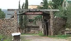 On April 14, 1912, Buffalo Bill Cody and his foster son Lewis Henry "Johnny" Baker established High Jinks as a gold mine and ranch; it is unknown which of the two came up with the name. Cody visited a cabin at the ranch until his death in 1917; however, the mine produced little gold, and Cody never saw a return on his investment. The High Jinks Gold Mining Company failed to pay property taxes on the mine for several years, resulting in its seizure by Pinal County in 1921; the county then sold the property to the State of Arizona.[3]