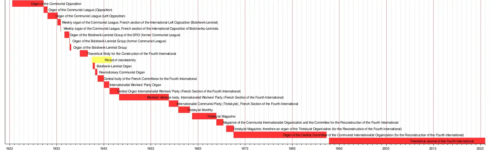 Initially built by Trotsky, it has gone through several phases in its 94 years of existence. Created to fight against the bureaucratization of the French Communist Party, it became a reference for the labor movement in that country, always being published by organizations linked to Trotskyism. During the Occupation of France by Nazi Germany, it was published clandestinely, becoming the first publication of the French Resistance,[3] and carrying out emblematic campaigns, such as the fight against the Compulsory Work Service deportations[4] and anti-Semitism.[5]